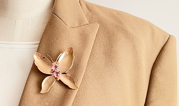 ºê·¡½º(Ȳµ¿)·Î ¸¸µé¾îÁø ³ªºñ ¸ð¾çÀÇ ÇÉÀÔ´Ï´Ù. Á߽ɺο¡´Â ÇÎÅ© ¶óÀνºÅæµéÀÌ ¼¼ÆÃµÇ¾î ÀÖÀ¸¸ç »ì¦ ¿À¸ñÇÏ°Ô ³¯°³¸¦ Ç¥ÇöÇÏ¿© ÀÔü°¨À» ºÒ¾î³Ö¾ú½À´Ï´Ù.