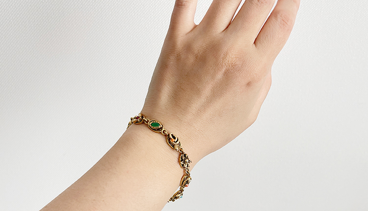 GOLDETTEÀÇ ¸Ú½º·¯¿î Âü ÆÈÂîÀÔ´Ï´Ù. °ïÃæ, ÇÏÆ®, ²É µîÀÇ ´Ù¾çÇÑ ÇüÅÂÀÇ ÂüµéÀÌ ¿¬°áµÇ¾î ´Ù¾çÇÑ Ä÷¯ÀÇ ½ºÅæµé·Î Àå½ÄµÇ¾î ÀÖ½À´Ï´Ù. 1960³â´ë Á¦Ç°À¸·Î º¸À̸ç ÄÁµð¼ÇÀÌ »ó´çÈ÷ ÁÁÀº Á¦Ç°ÀÔ´Ï´Ù. ¿©·¯ Â÷·Ê ÀÔ°íµÈ Á¦Ç°Àε¥ ¶óÀνºÅæµéÀÇ Ä÷¯°¨ÀÌ ¹Ì¹¦ÇÏ°Ô °¢°¢ ´Þ¶ú´ø Á¡µµ Ư¡ÀûÀÔ´Ï´Ù.
