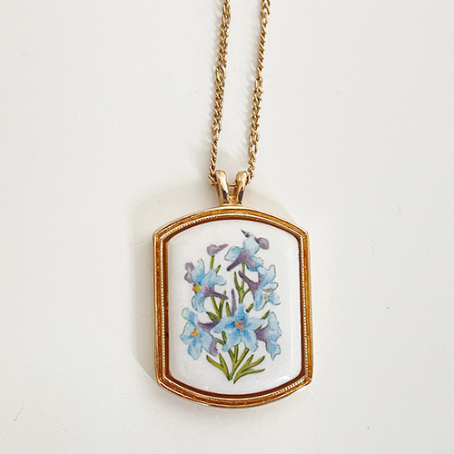 AVONÀÇ 1980³â´ë ÃÊ¹Ý Á¦Ç°ÀÔ´Ï´Ù. ź»ýȸ¦ ¸ðƼºê·Î ÇÑ Á¦Ç°À¸·Î ÀÌ Á¦Ç°Àº 7¿ù ź»ýÈÀÎ ¹Ì³ª¸®¾ÆÀçºñ(LARKSPUR)¸¦ ¸ðƼºê·Î ÇÑ Á¦Ç°ÀÔ´Ï´Ù. Ǫ¸¥ »öÀÇ ²ÉÀÌ ÇÁ¸°Æ®µÈ Æ÷½½¸° Ææ´øÆ®°¡ ½ÉÇÃÇÑ º£Áñ¿¡ ºÎÂøµÇ¾î ±ò²ûÇÑ Á¦Ç°ÀÔ´Ï´Ù.